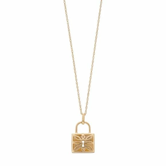 Featuring a charming lock motif and scintillating diamonds, this two-tone sterling silver pendant is the key to a chic look.