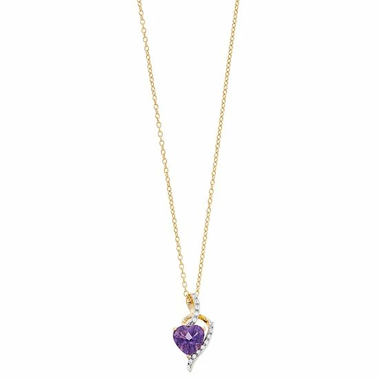 A genuine amethyst center stone and scintillating, lab-created white sapphire accents combine to give this heart pendant a captivating look.