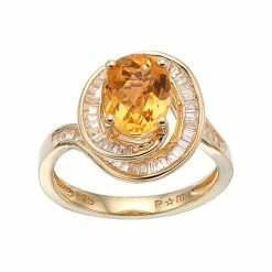 A genuine oval-cut citrine center stone and baguette-cut, lab-created white sapphire accents make this twist ring a magnificent choice.