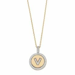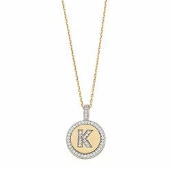Accentuated with pave-set cubic zirconia stones and milgrain detailing, this initial disc pendant is a dazzling way to personalize your outfit.