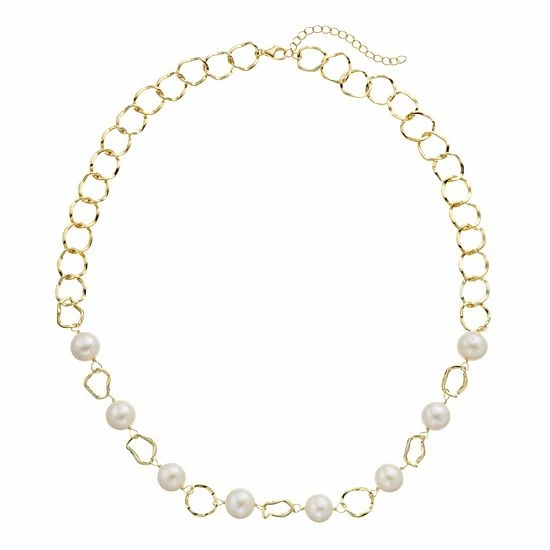Add a touch of elegance to your wardrobe with this unique cultured pearl necklace, featuring a 14k gold plated hammered link chain.