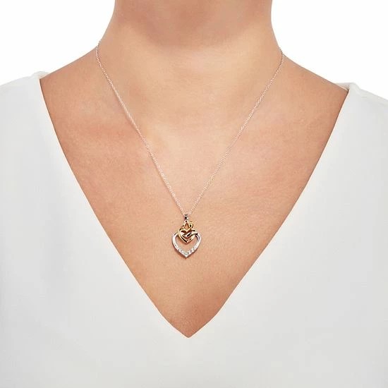 Featuring a diamond-accented pendant with a mother embracing her baby, this sterling silver necklace offers a lovely look.