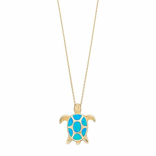 A lab-created blue opal shell atop a turtle pendant makes this necklace an enchanting addition to your jewelry collection.