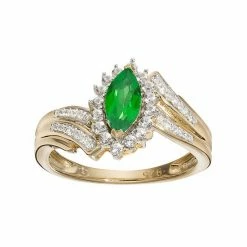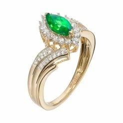 Featuring a simulated emerald center stone and eye-catching lab-created white sapphire accents, this 14k gold over silver marquise ring makes a beautiful choice.