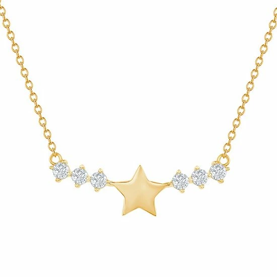 Add a stellar touch to your look with this gold over sterling silver star and cubic zirconia bar necklace.