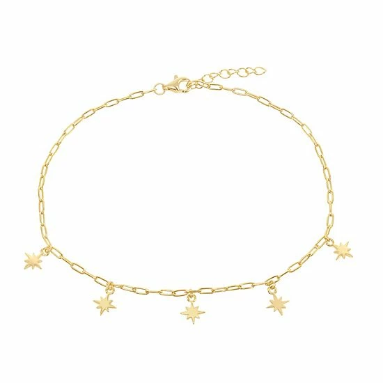 This gorgeous 14k gold over sterling silver charm anklet is the perfect way to finish any outfit.