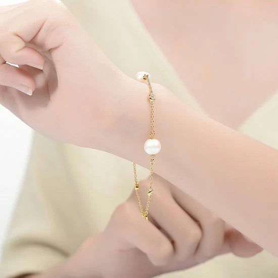 This stunning 14k gold over sterling silver freshwater cultured pearl bracelet is the perfect way to add something special to finish your favorite outfits.