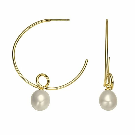 These stunning 14k gold over sterling silver freshwater cultured pearl open hoop earrings are the perfect way to finish any outfit.