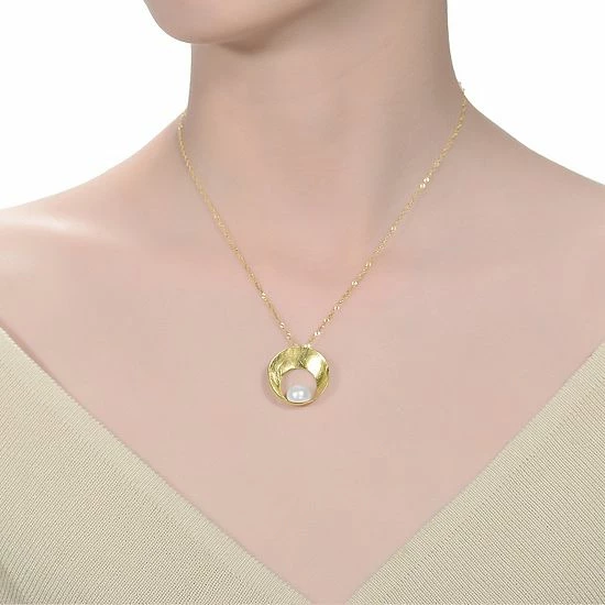 This gorgeous 14k gold over sterling silver freshwater cultured pearl round pendant necklace is a must-add to your fine jewelry collection.