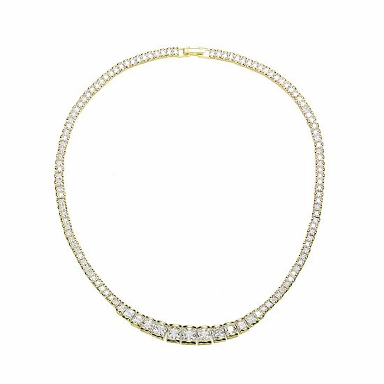 This stunning 14k gold over sterling silver tennis necklace is a must-add to your fine jewelry collection.