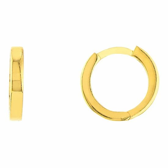 These 14k gold square huggie hoop earrings are the perfect way to finish any outfit.