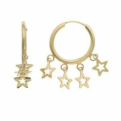 You’ll be the star of any room you’re in whenever you wear these 14k gold star dangle hoop earrings.