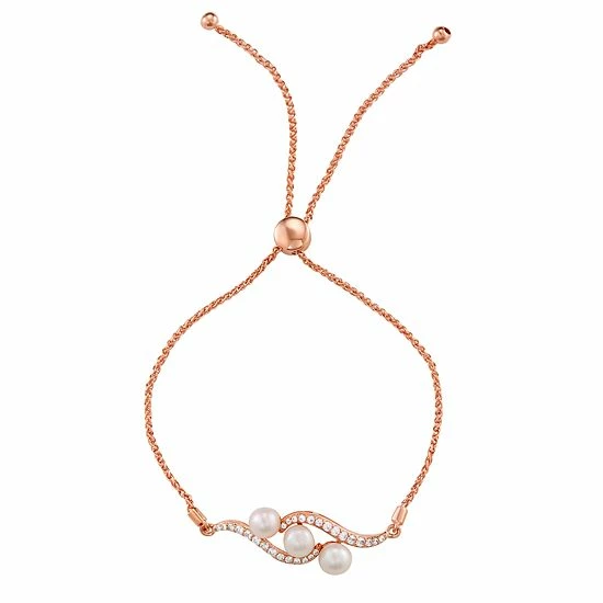 Decorated with a trio of lustrous freshwater cultured pearls and lab-created white sapphire accents, this elegant adjustable bracelet beautifully complements your attire.