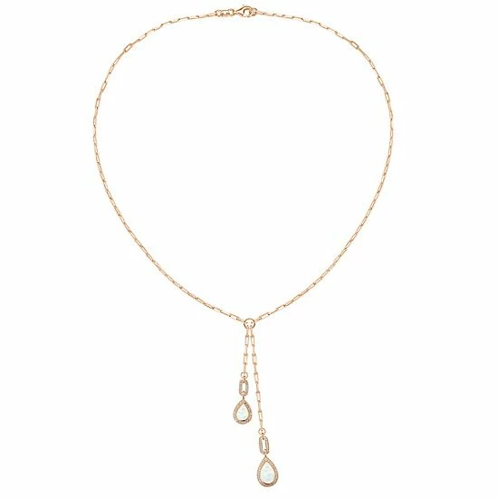 Accent your ensembles in a beautiful way with this elegant lab-created opal and lab-created white sapphire drop necklace.