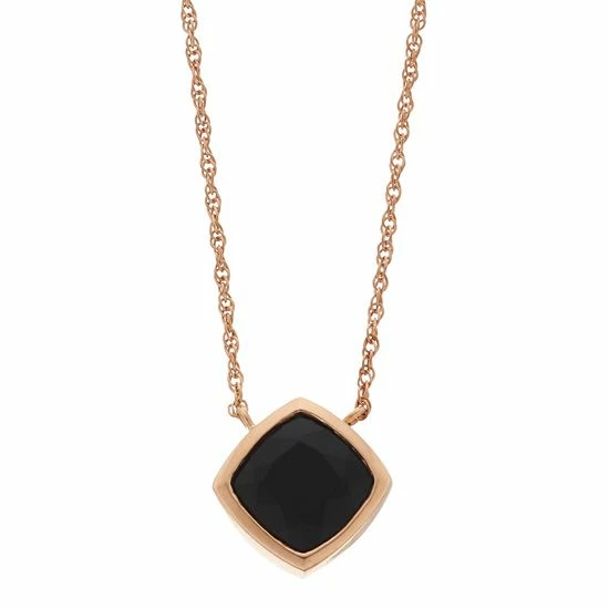 Bold and eye-catching, this 14k rose gold-over-silver onyx necklace completes your look in style.