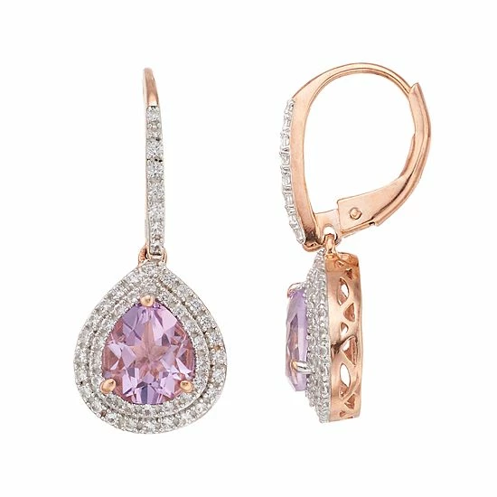 Decorated with pear-shaped Rose de France amethyst gemstones and lab-created white sapphire accents, these halo teardrop earrings are simply stunning.