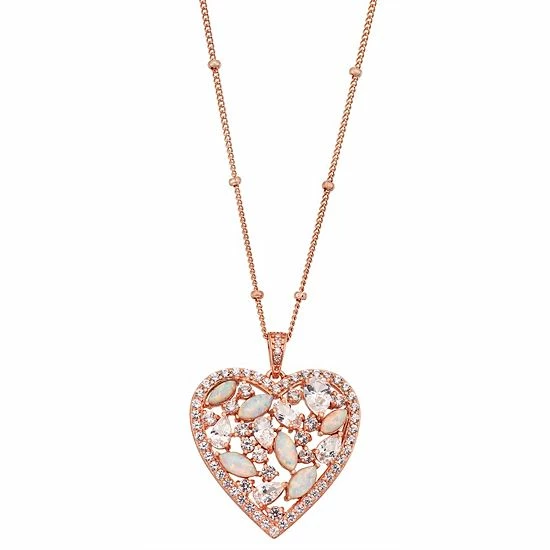 Featuring lab-created white opals and lab-created white sapphires, this charming heart pendant is an enchanting addition to your look.