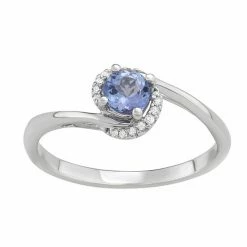 Decorated with a round-cut gemstone center stone and diamond accents, this 14k white gold bypass ring is an elegant addition to your look.