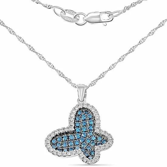 Add a touch of sparkling sweetness to your jewelry collection with this blue and white diamond butterfly pendant necklace on a delicate 14k white gold chain.