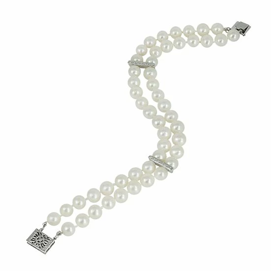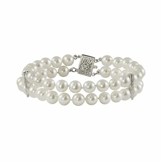 This freshwater cultured pearl bracelet features diamond-accented links, making it a lavish addition to your look.
