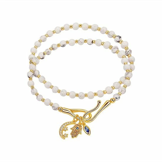 Made from howlite beads and decorated with hamsa and crescent moon charms, this bracelet stylish bracelet set is sure to be an everyday favorite.