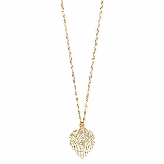 Decorated with dazzling cubic zirconia gemstones, this 18k gold over silver peacock pendant offers distinctive style.