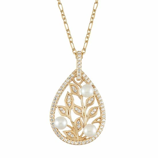 Featuring lustrous, freshwater cultured pearls and an open-worked leaf motif, this teardrop pendant necklace will enhance any ensemble.