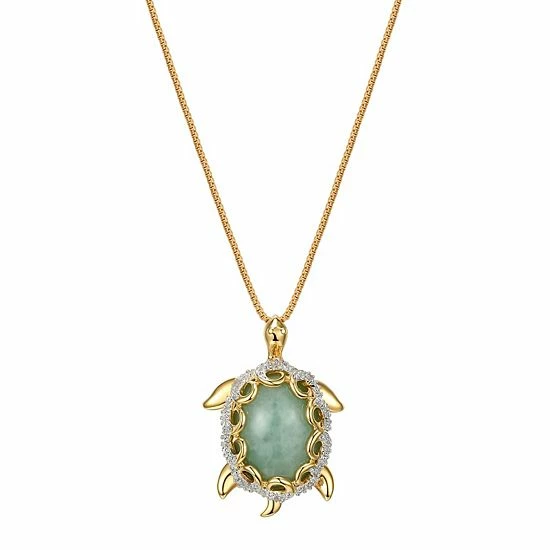 These gorgeous 18k gold over sterling silver diamond accent and jade turtle pendant necklace.