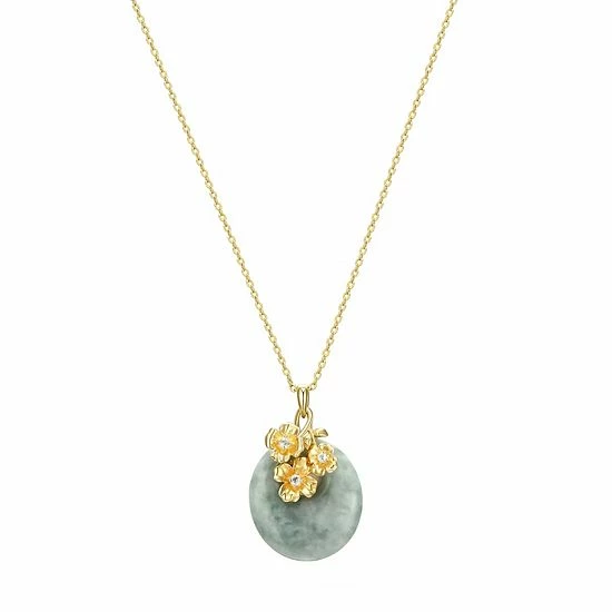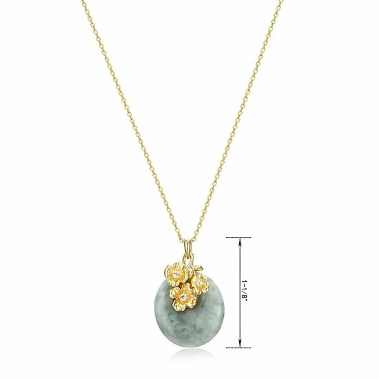 Finish off your ensemble with a touch of sweetness in this 18k gold plated white topaz-studded flowers and oval jade medallion pendant necklace.
