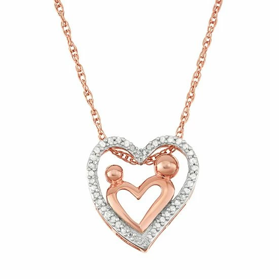 Decorated with shimmering round-cut diamonds and a heart design, this motherly love pendant makes a charming choice for Mom.