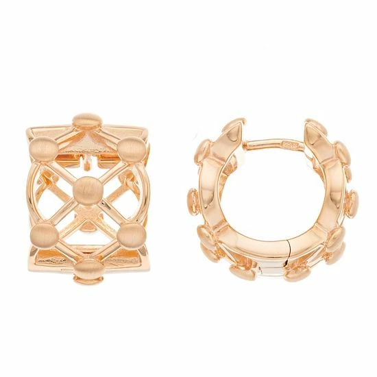 Featuring a unique lattice motif, these 18k rose gold over silver hoops add a distinctive touch to your wardrobe.