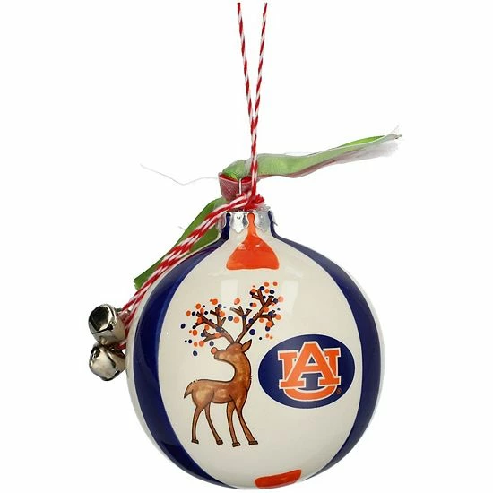 Dress your tree or mantle up this holiday season with this Auburn Tigers Ceramic Team Ball Ornament. This ornament comes complete with distinct hand-painted graphics and bell and ribbon accents. Choose this unique Auburn Tigers-themed knick-knack to add to the merriment and team pride that your home is known for.