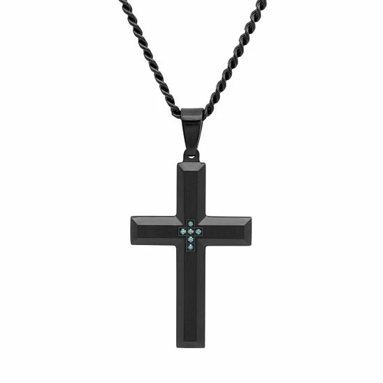 Designed with round-cut blue diamond accents, this black ion-plated stainless steel cross pendant necklace distinguishes your style from the rest.