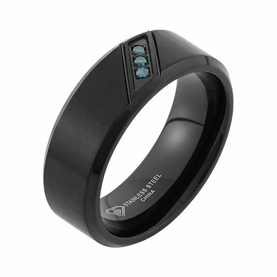 This men’s blue diamond accent wedding band is a handsome way to showcase your commitment.