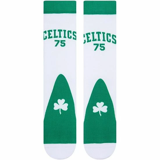 Celebrate the legacy of the Boston Celtics with a bit of subtlety with these Hardwood Classics 75th Anniversary crew socks. They feature authentic Boston Celtics colors along with a formed heel and seamless toe for a comfy fit. Even if they go unseen, you can rest assured you’ll be sporting a spirited look from head to toe when you throw these on socks.
