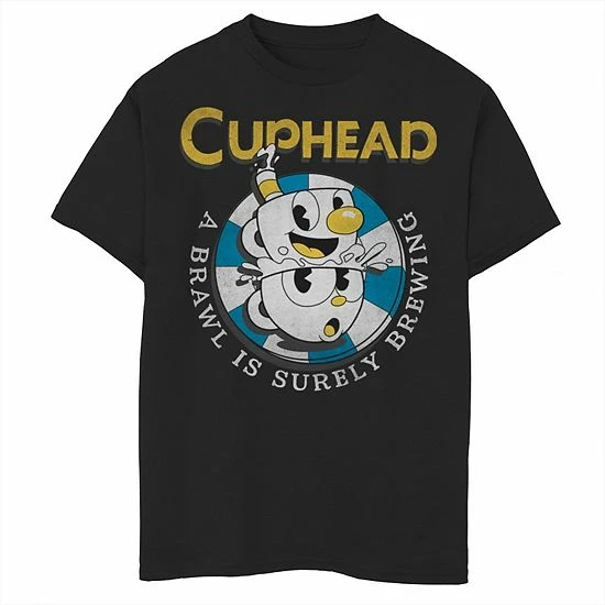 He’ll love the cool look of this boys’ Cuphead Mugman Poker Chip Brewing Brawl Graphic Tee.