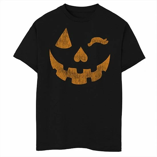 He’ll love the cool graphic on this boys’ Halloween Jack-O’-Lantern Grin Pumpkin Wink Graphic Tee.