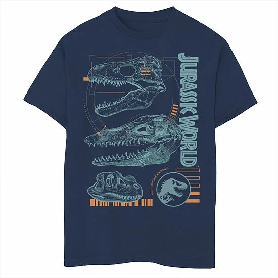 He’ll love the cool look of this boys’ Jurassic World Two Dinosaur Skull Schematic Graphic Tee.