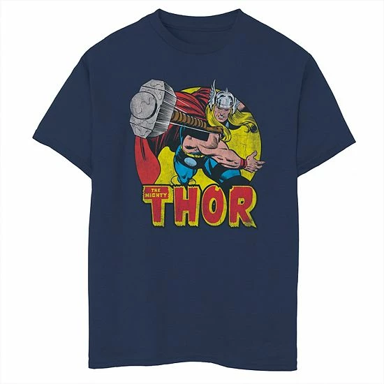 He’ll love the cool look of this boys’ Marvel Mighty Thor Hammer Throw Vintage Graphic Tee.