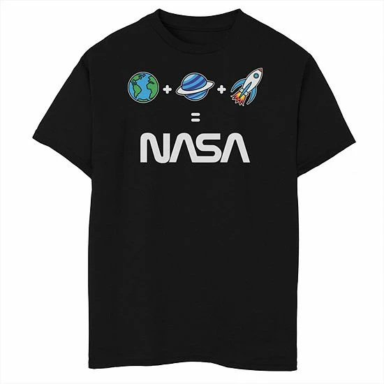 He’ll love the cool graphic on this boys’ NASA Earth Plus Planet Plus Rocket Is NASA Emoji Graphic Tee.