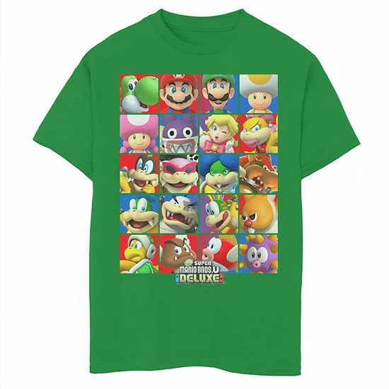 He’ll love the cool look of this boys’ Nintendo Super Mario Bros U Deluxe Character Selection Panel Grid Graphic Tee.