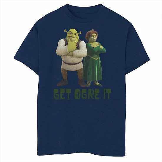 He’ll love the fun style of this boys’ Shrek Fiona & Shrek Get Ogre It Text Poster Tee.