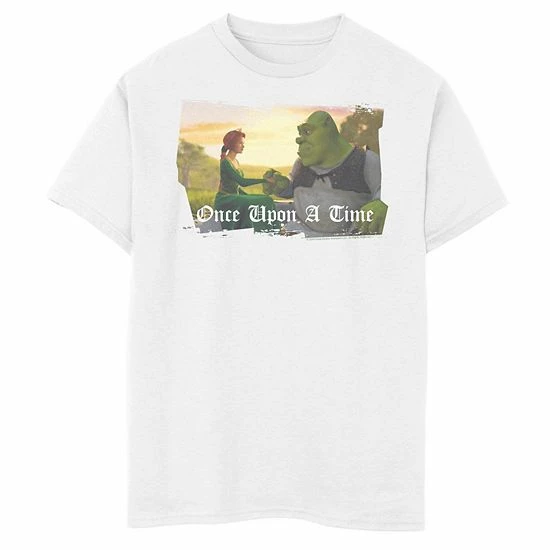 He’ll love the cool look of this boys’ Shrek Fiona & Shrek Once Upon A Time Text Poster Tee.