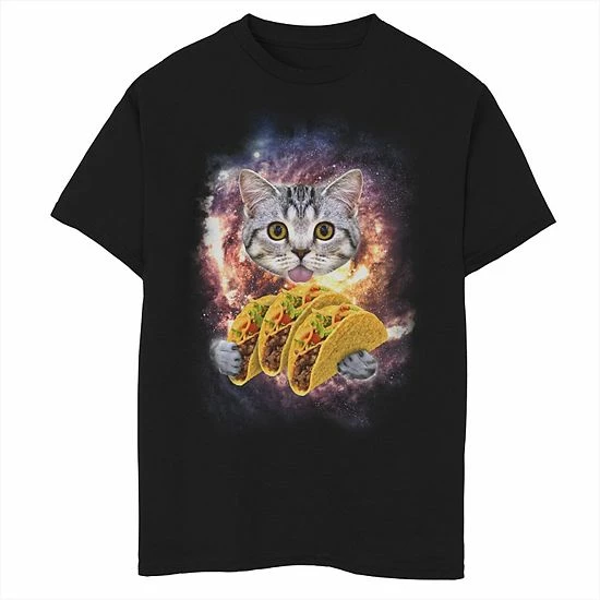 He’s sure to love wearing this boys’ Space Cat Tacos Graphic Tee.