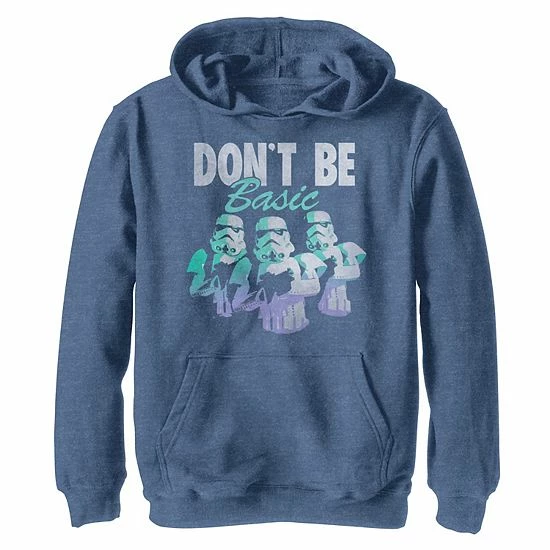 He’s sure to love the cool style of this boys’ Star Wars Stormtroopers Don’t Be Basic Funny Graphic Hoodie.