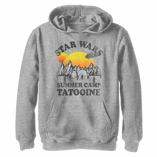 He’s sure to love the cool style of this boys’ Star Wars Tatooine Summer Camp Igloo Sunrise Retro Graphic Hoodie.