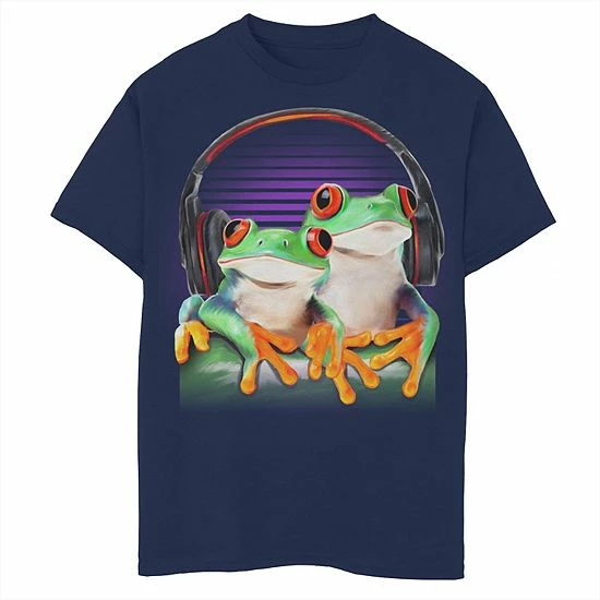 He’s sure to love wearing this boys’ Twin Frogs Wearing Headphones Graphic Tee.