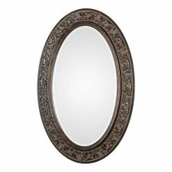 This beautiful wall mirror features an elegant oval shape and bronze finish frame.
