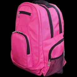- Backpack has 2 main compartments, 2 side pockets, 2 front pockets, and 1 water bottle holder