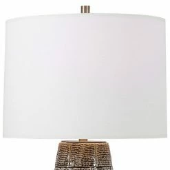 Create an eye-catching focal point in any room with this ceramic offset brick table lamp.